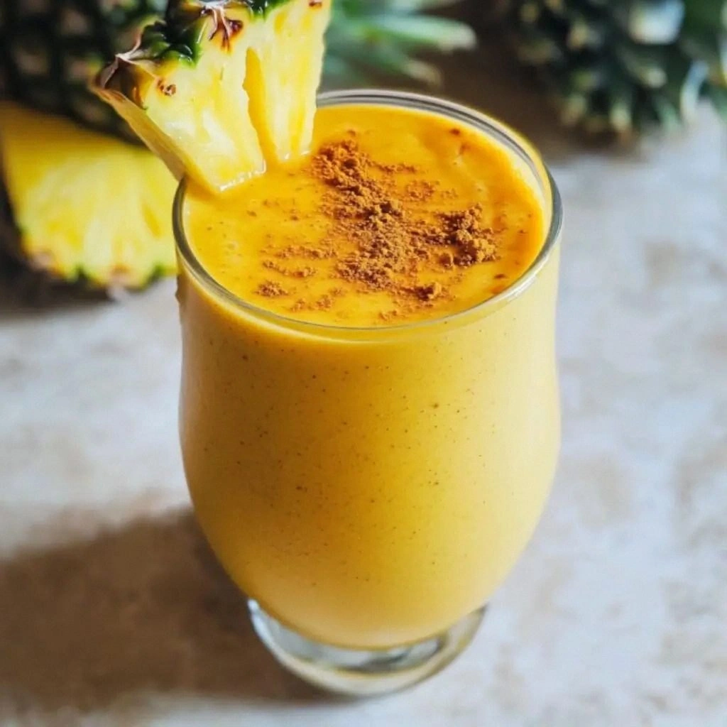 Picture this: a vibrant, golden‑orange swirl of pineapple that glistens with a faint sheen of coconut milk, a subtle hint of lime that cuts through the sweetness, and a whisper of turmeric that gives it that earthy, golden glow. The aroma is a heady mix of tropical fruit, warm spices, and a faint citrus tang that makes your nose twitch in anticipation. When you take a sip, the first thing you notice is the silky texture that coats your tongue like a velvet ribbon, followed by the bright, tangy punch of pineapple, the mellow sweetness of honey, and the gentle warmth from ginger and turmeric. The finish is bright and refreshing, with a lingering citrus note that leaves you craving another sip.