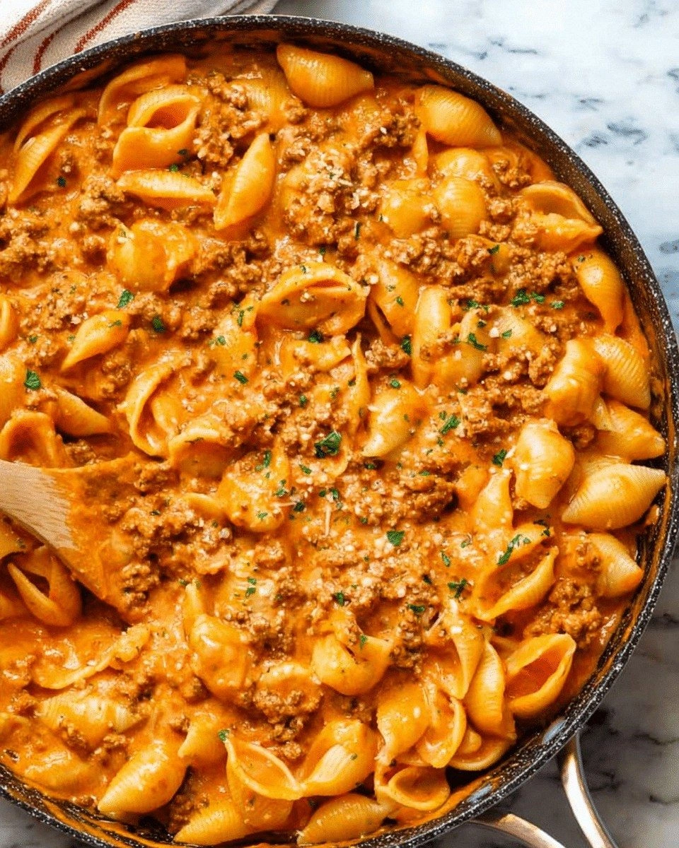 Picture this: a bubbling pot of sauce that glistens like polished amber, the aroma of garlic and sautéed onions drifting through the kitchen, and the sound of a sizzling pan that says, “It’s happening.” The first spoonful is a velvety explosion of rich beef, tangy cream, and sharp cheese that coats the shells like velvet. The contrast of the creamy sauce against the slightly al dente shells creates a dance of textures that is both comforting and exciting. And the moment you take that first bite, you know you’re about to taste something that will haunt your cravings for days.