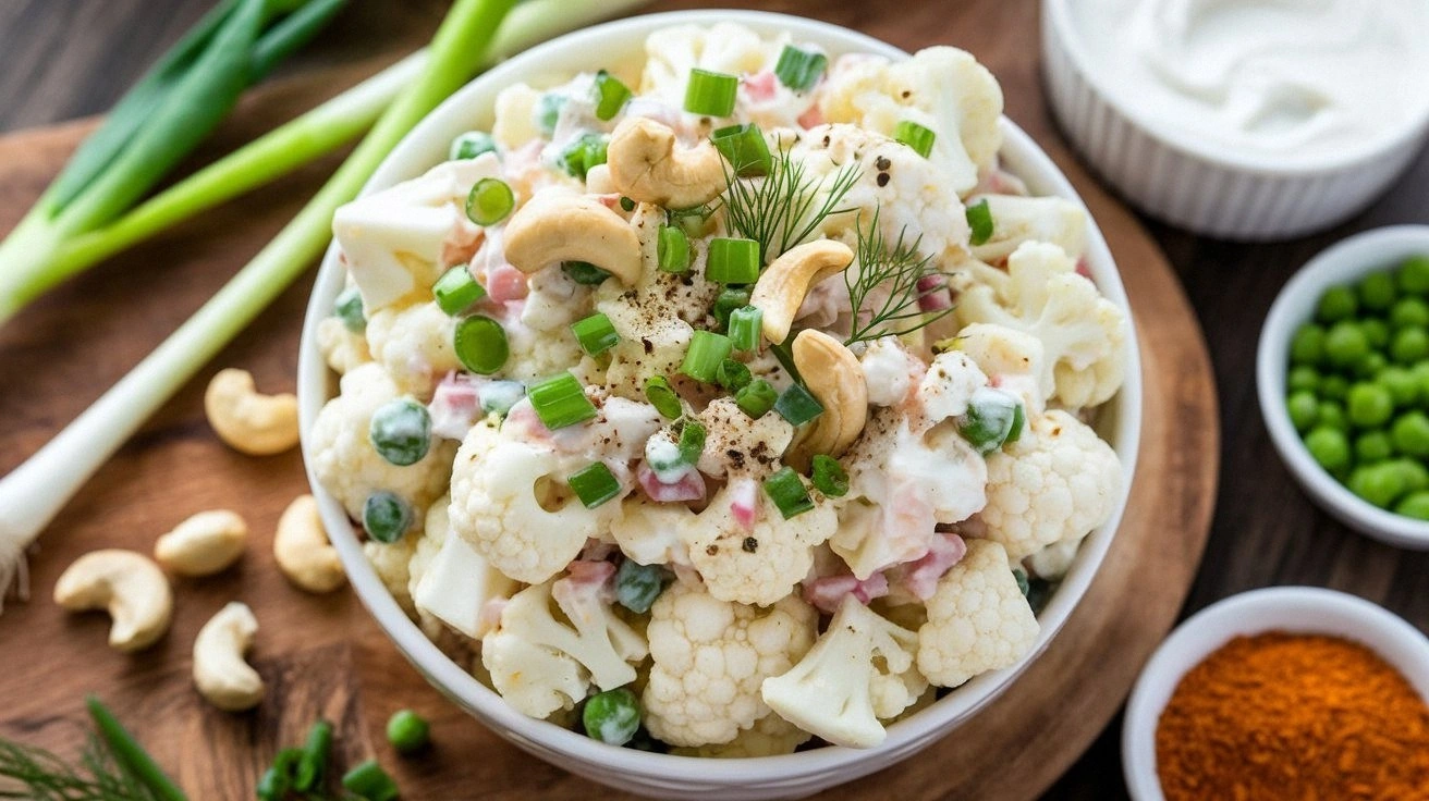 - Serve. Transfer the creamy cauliflower salad to a serving bowl or plate. Garnish with toasted cashews or chopped peanuts for an extra crunch. This dish pairs beautifully with a side of quinoa or crusty bread, but you can also enjoy it on its own as a satisfying, protein‑rich meal. Remember, the flavors deepen over time, so feel free to make it ahead of schedule.