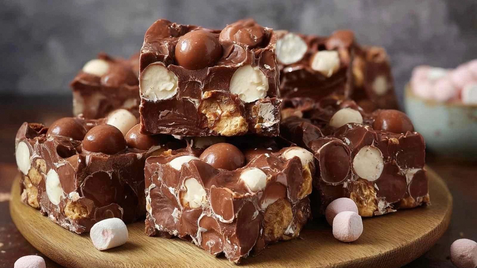 Butter is essential for creating a smooth, cohesive base that holds the Maltesers together. The 200 g of unsalted butter melts just enough to bind the chocolate and golden syrup, giving the bars a buttery sheen. Golden syrup is the secret sweetener that gives the dessert its caramelized undertone; 150 g of it melts into the chocolate, adding a subtle toffee flavor that pairs beautifully with the crunch of the biscuits. Malted milk biscuits, crushed into a coarse texture, provide a buttery crumb that contrasts with the chocolate’s silkiness. Mini marshmallows add a chewy component that softens the overall bite, while the Maltesers deliver the signature crunch that keeps each mouthful interesting.