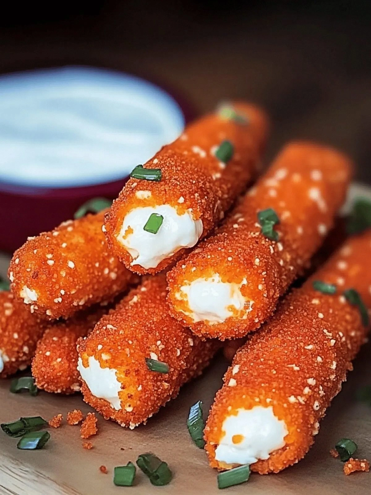 16. Serve the sticks immediately with a side of ranch or blue cheese dressing for dipping. The creamy sauce contrasts the spicy coating and adds a cool counterbalance. Arrange them on a platter for an eye‑catching presentation. The aroma alone will have guests lining up for a taste. This is the moment you can brag about your culinary prowess.