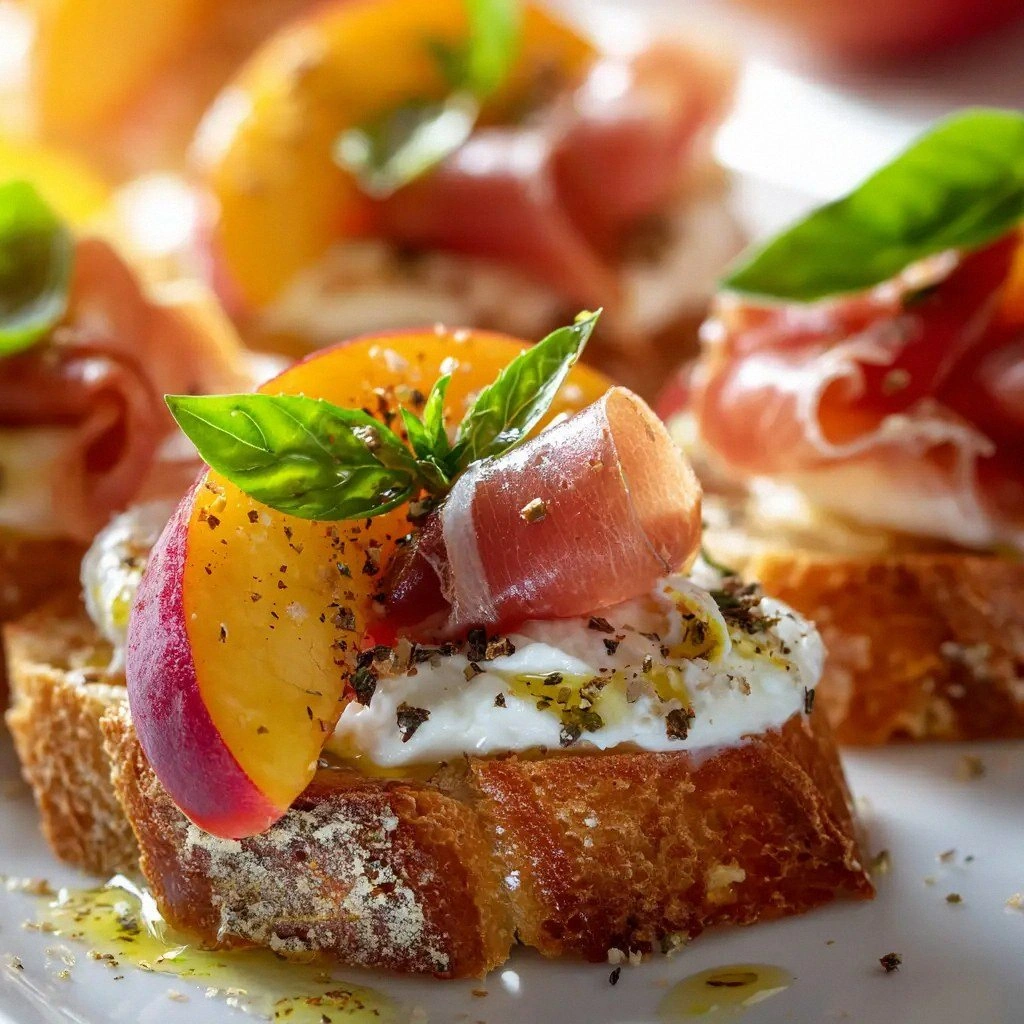 Peaches are the unexpected star that turns a simple crostini into a summer masterpiece. Choose peaches that are fragrant, slightly soft to the touch, and free of bruises. Their natural sweetness cuts through the richness of the burrata and the saltiness of the prosciutto, creating a harmonious balance. If you skip the peaches, you lose that bright, juicy punch that makes this dish unforgettable.
