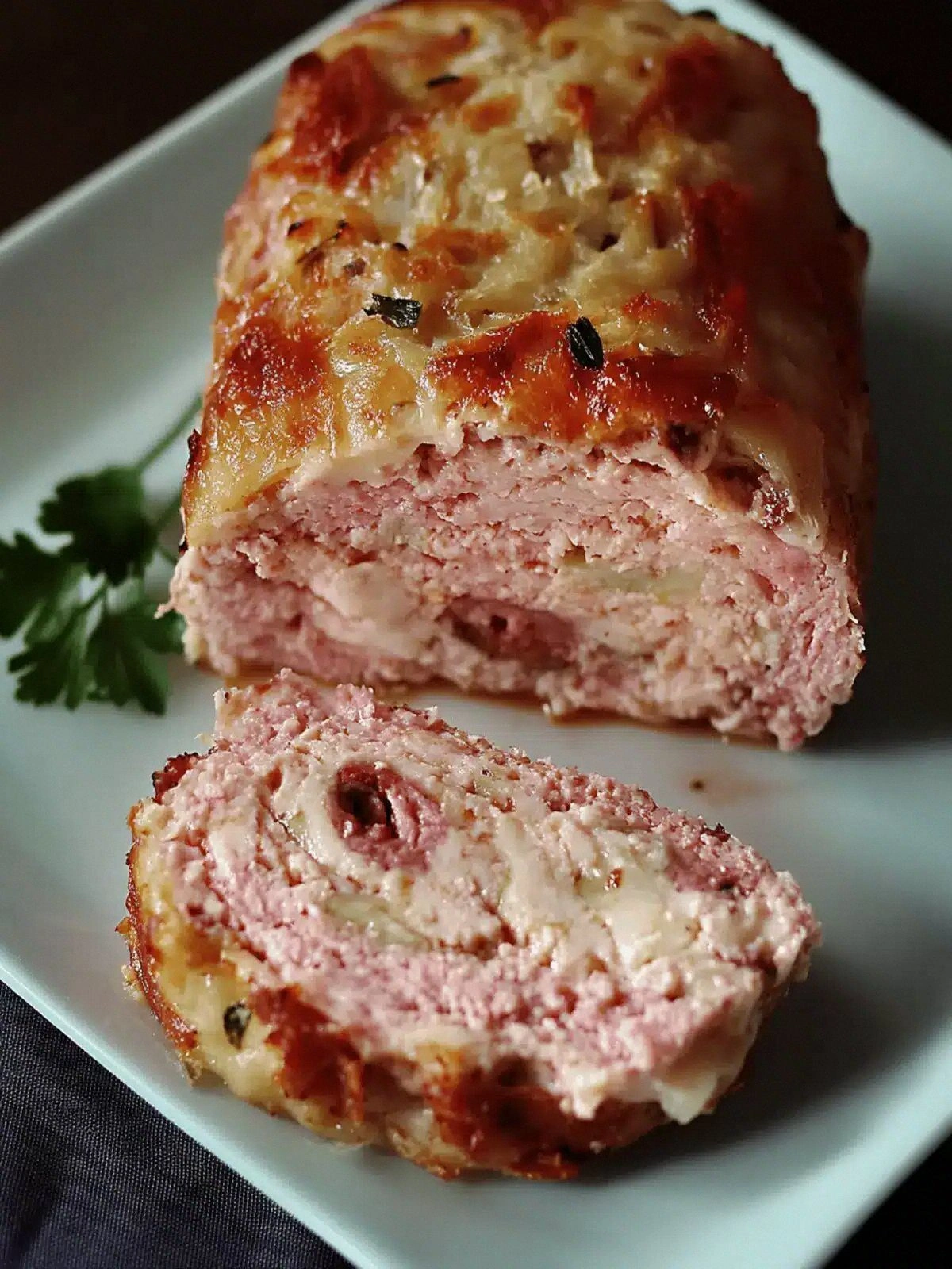 Use a plant‑based ground “chicken” alternative and vegan Swiss cheese. Replace the egg with a flaxseed egg and use a plant‑based butter substitute. The result is a cruelty‑free loaf that still delivers on flavor.