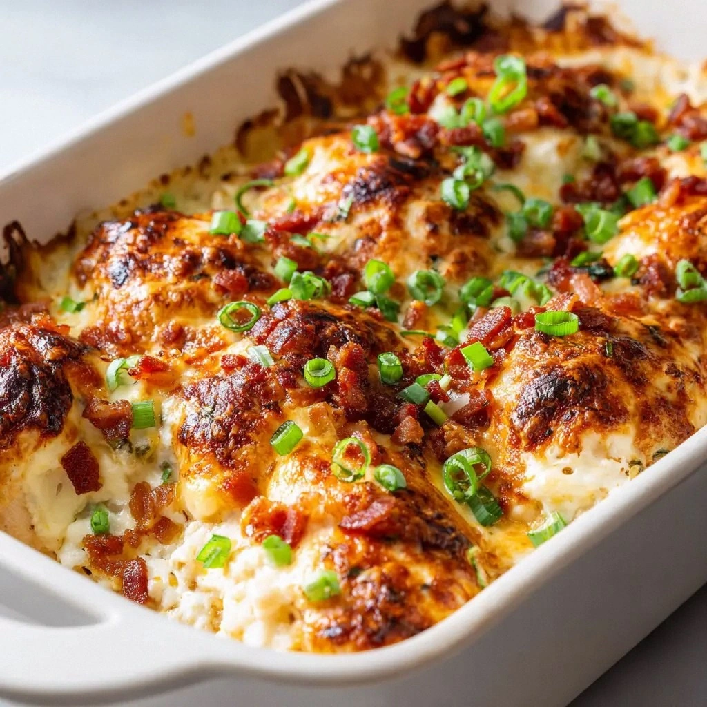 Picture this: a sheet pan steaming with a glossy mixture of melted cream cheese, mayonnaise, and sour cream, the air thick with the scent of melted mozzarella and crisp bacon. As the oven heats, the edges of the casserole begin to caramelize, forming a golden crust that crackles like the first snowflake of winter. The sound of the sizzling bacon is the soundtrack of triumph, and the first bite is a symphony of textures—soft, juicy chicken, a velvety sauce that coats every crumb, and a bubbly cheese layer that melts into a molten river. The fresh green onions add a bright, almost citrusy pop that cuts through the richness, and the subtle hit of garlic and onion powder ties everything together. Every element is a deliberate choice that balances flavor, texture, and visual appeal into one unforgettable experience.